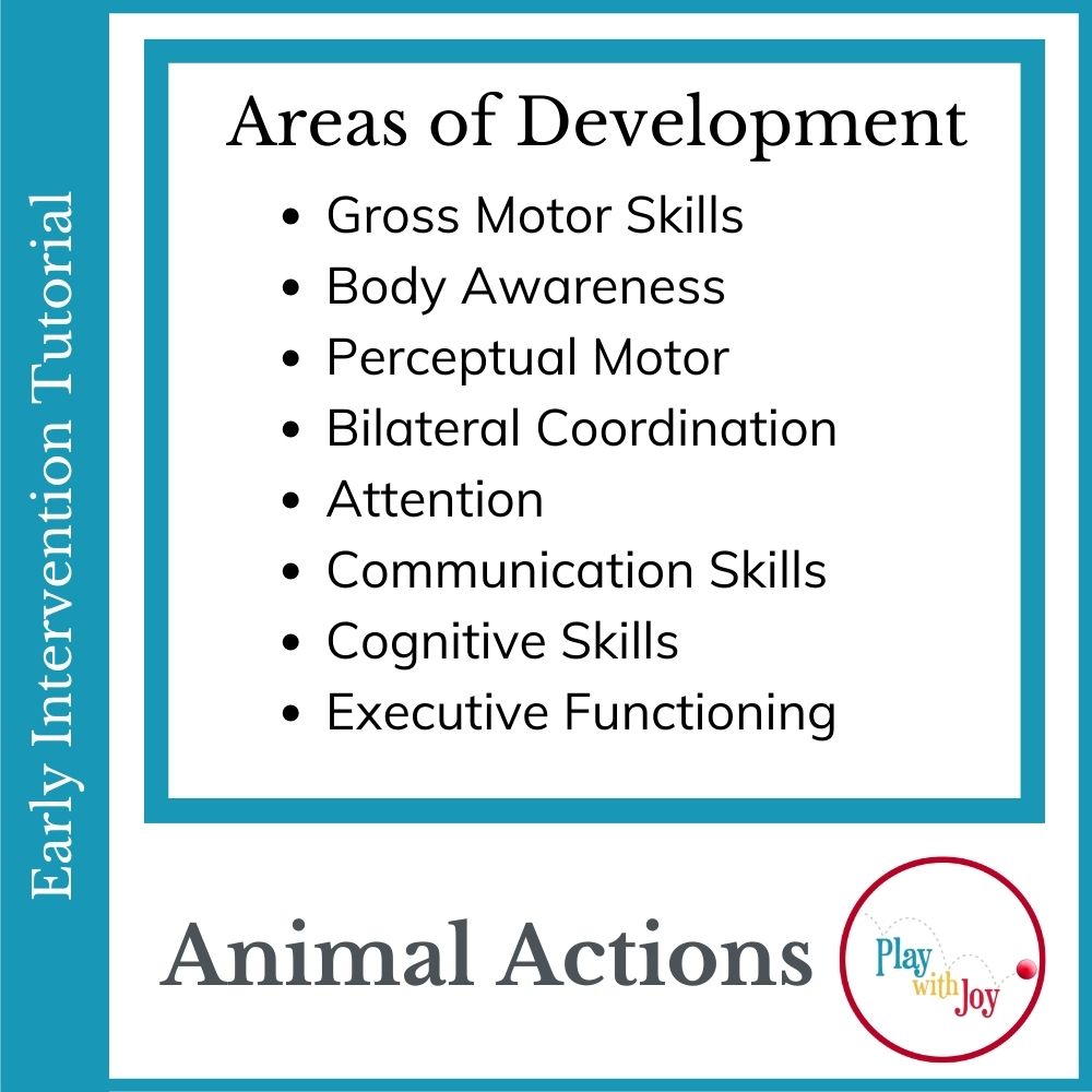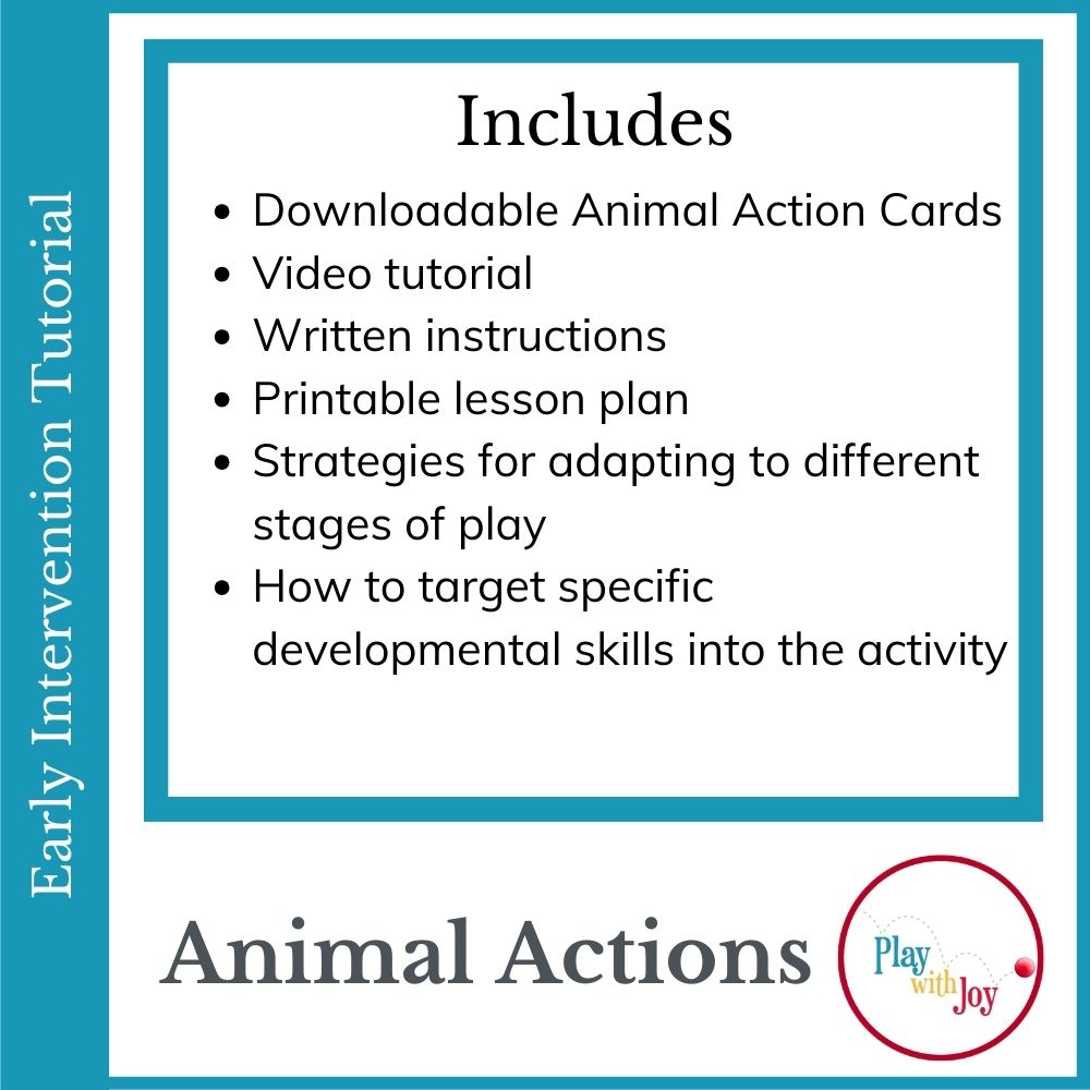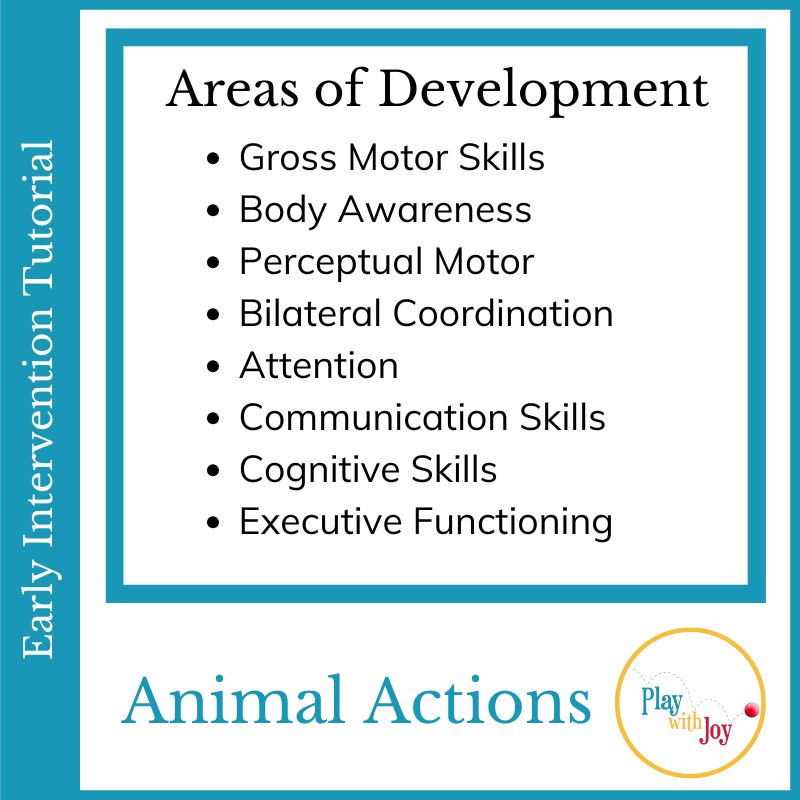 Animal Actions is a fun, movement-based activity designed to help children develop key skills while engaging their bodies and imaginations. With this resource, you’ll receive access to the full tutorial, which includes ways to support gross motor skills, body awareness, perceptual motor development, bilateral coordination, attention, communication, cognitive skills, and executive functioning.