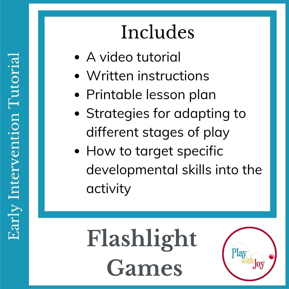 With this tutorial, you’ll gain full access to playwithjoy.com/post/flashlight-games, designed to help you boost engagement while intentionally targeting multiple developmental areas through play. This includes a video tutorial, a ready-to-use printable lesson plan, and clear guidance for adapting the activity to meet the unique needs of the children you support. This activity can be used to strengthen: