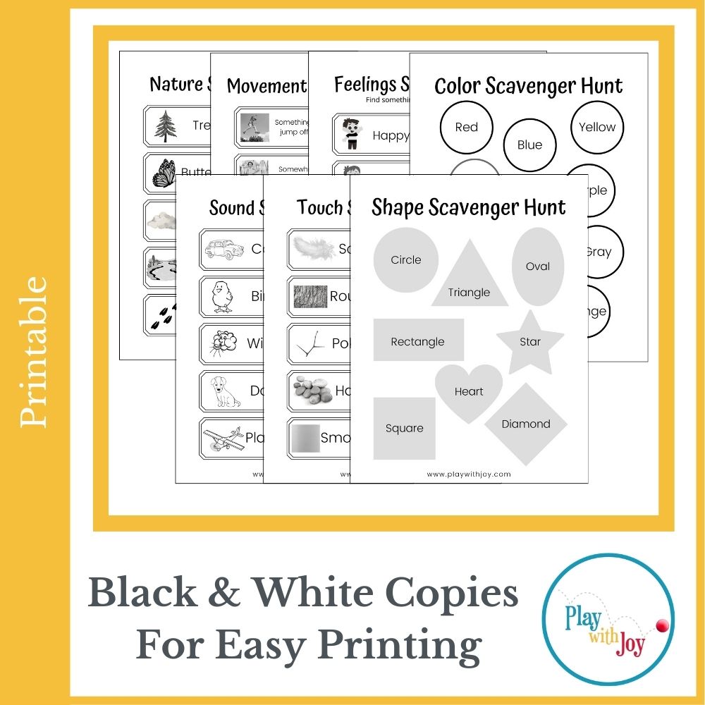 Use these scavenger hunts for a no-prep activity focusing on the senses. With your purchase, you will receive the following in both color and black & white:
