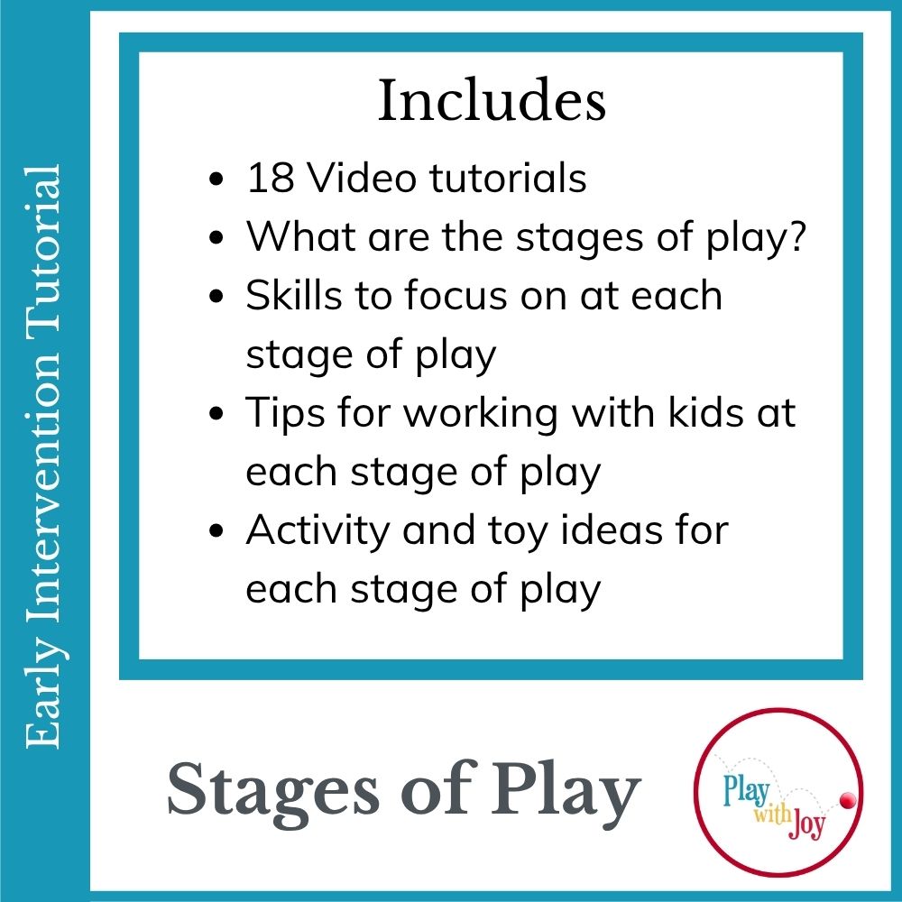 As you learn about the stages of play, you will be able to adapt activities to get the most out of your play time. When you learn to play at the right level, you’ll provide opportunities for your child to have the most growth in their development.